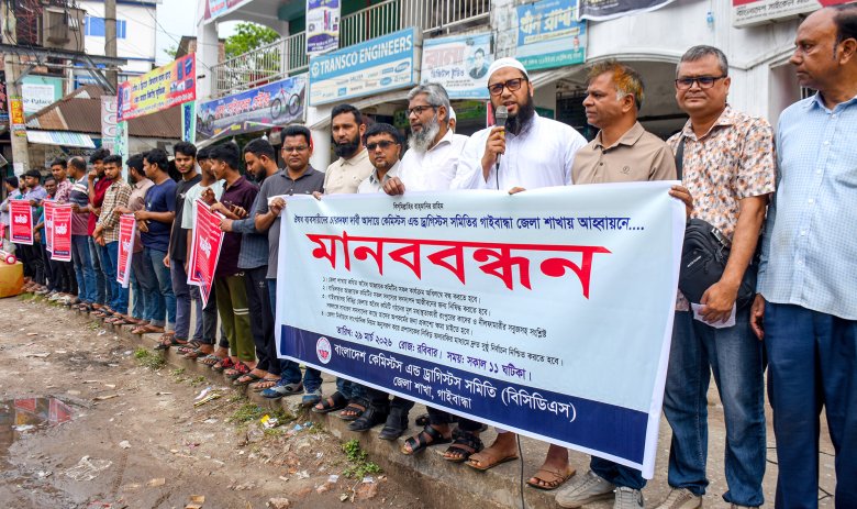 ওষুধের দোকান বন্ধ রেখে গাইবান্ধায় ব্যবসায়ীদের ধর্মঘট